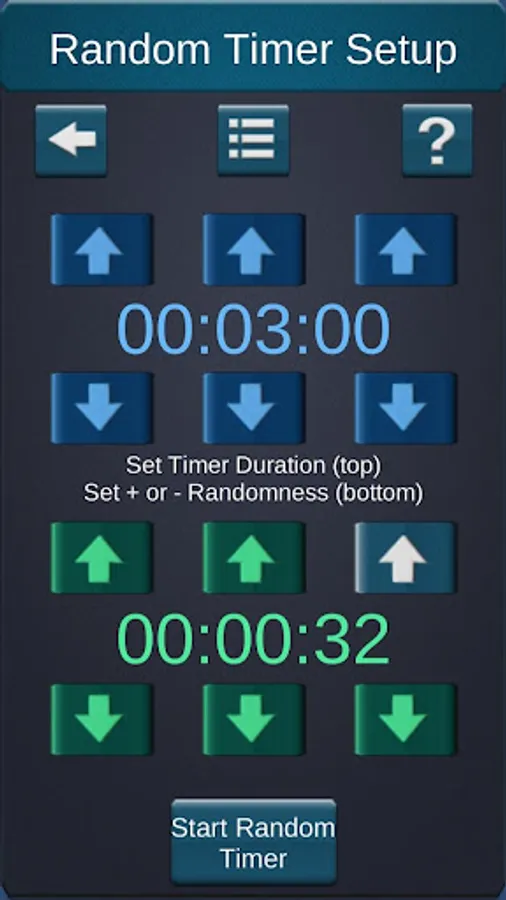 ✔️Hide timer countdown and duration remaining-- display. Allowing the device to be left face up on the table while still maintaining the "surprise" of the variable interval duration and countdown time (available on Fixed and Simple Random timers as well)