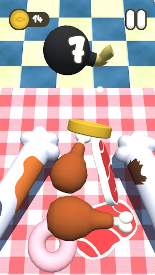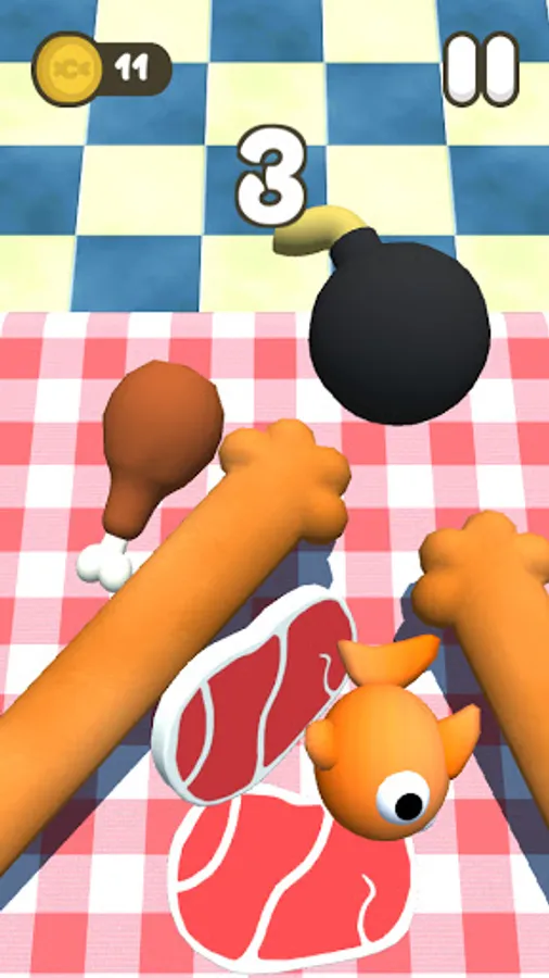 Eat as much food as you can! Use two fingers to control the cat's both paws. Slide as much food, by using the cat's paws, towards the cat to score points. Slide the bombs away from the cat. What will be your highscore?