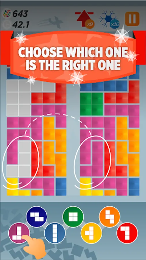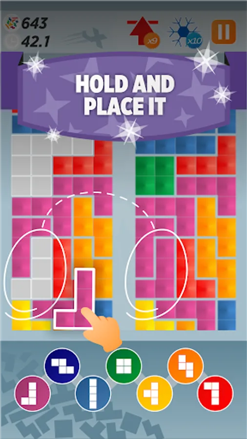 Select the right tetromino, drag it around and place it on the blank tiles before they reach the end. Don't forget to use twins columns and colors to your advantage!