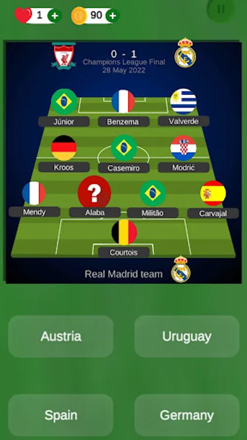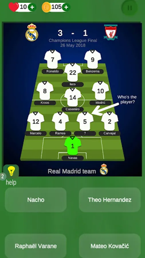 A wonderful game that talks about the European Champions League, cultural questions for all the teams participating in a tournament, such as who is the best player, who is the team that won a championship, the result of a final match in a championship, which team won first or second place, what is the result of the end of the tournament. .. Also this is a good game to test your knowledge of football in the Champions League