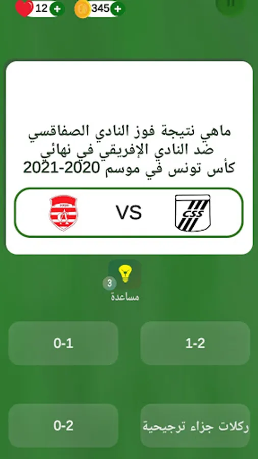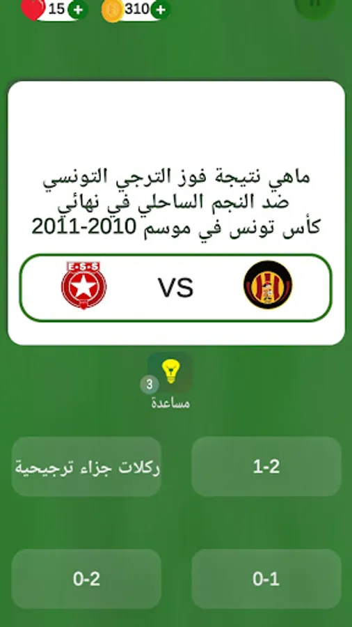 There are many wonderful questions such as who is the best player in a year and also what is the result of the Tunisian football cup final and remember a year and who is the historical top scorer for one of the Tunisian teams and the most participating player and many other questions especially on one of the Tunisian teams such as Esperance Sportive Tunisian and Club Africain, Etoile Sportive du Sahel, Club Sportive de Sfaxien, and many other great questions,