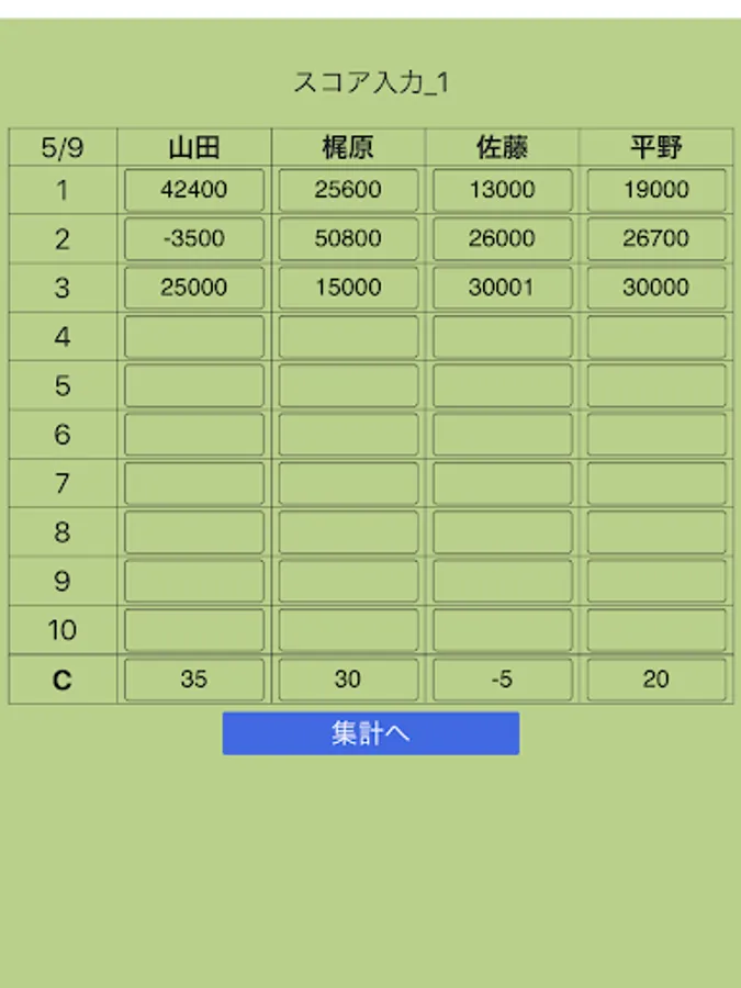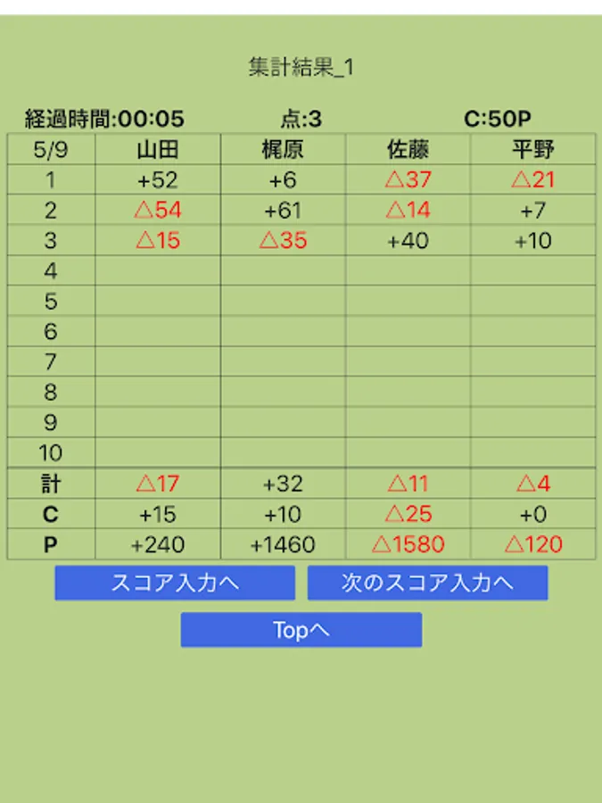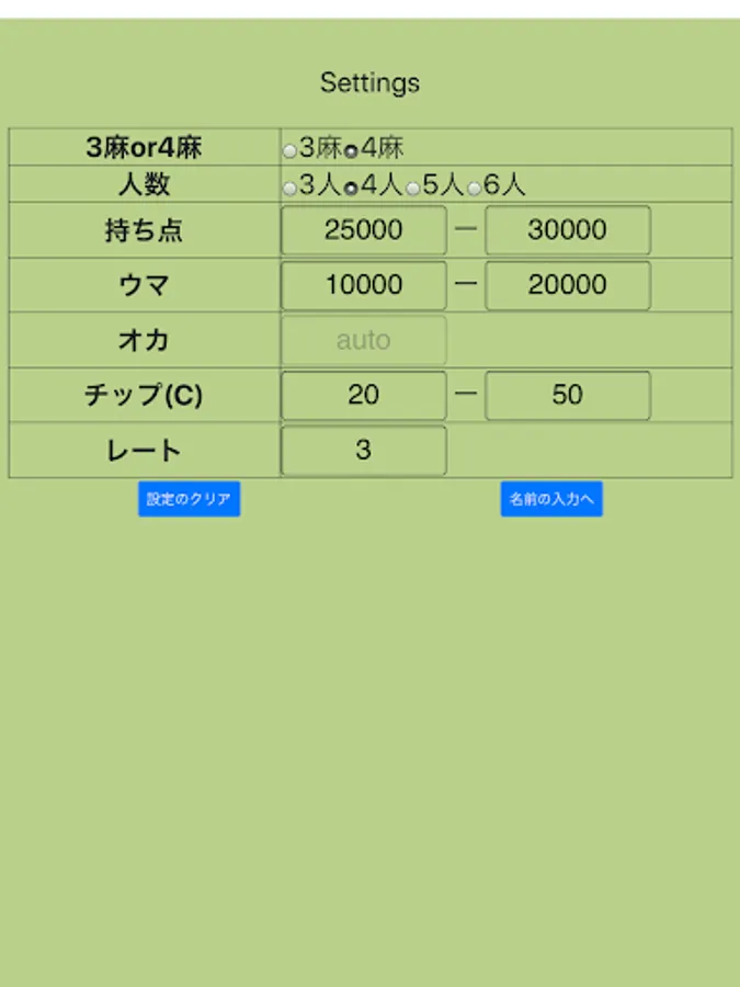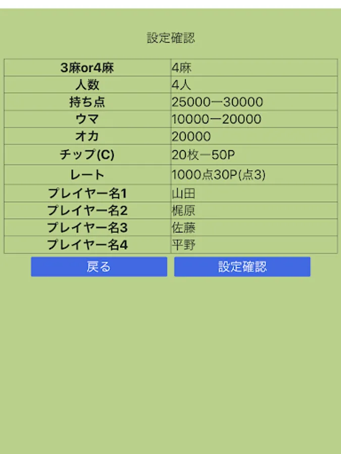 点数が同じ場合は起家に近い人の点数を+1点してください。チップの枚数は所持チップ数を入力してください。