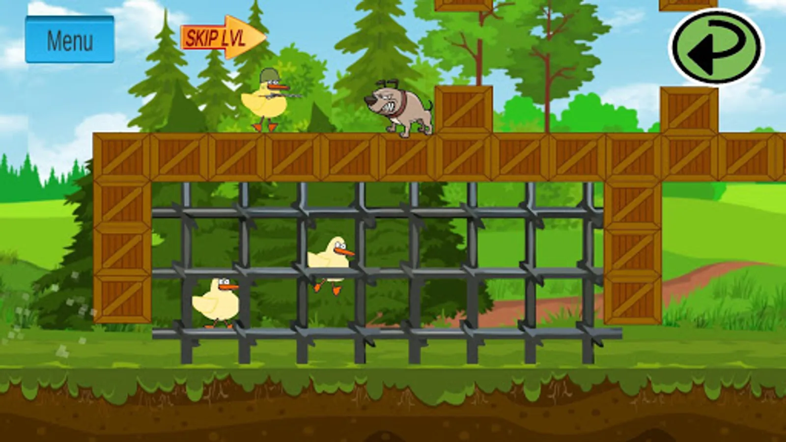 In the forest, in the clearing, it was always good. Everyone was doing their own thing. But at one point, the clearing was overshadowed by evil. They were DOGS. They captured all the locals and locked them in cages. To combat this, a special platoon was sent to the clearing, including private Duckers. Whether Duckers can help the clearing depends on you.