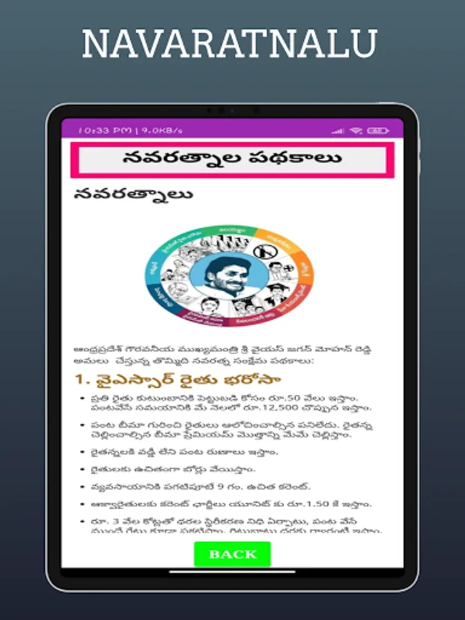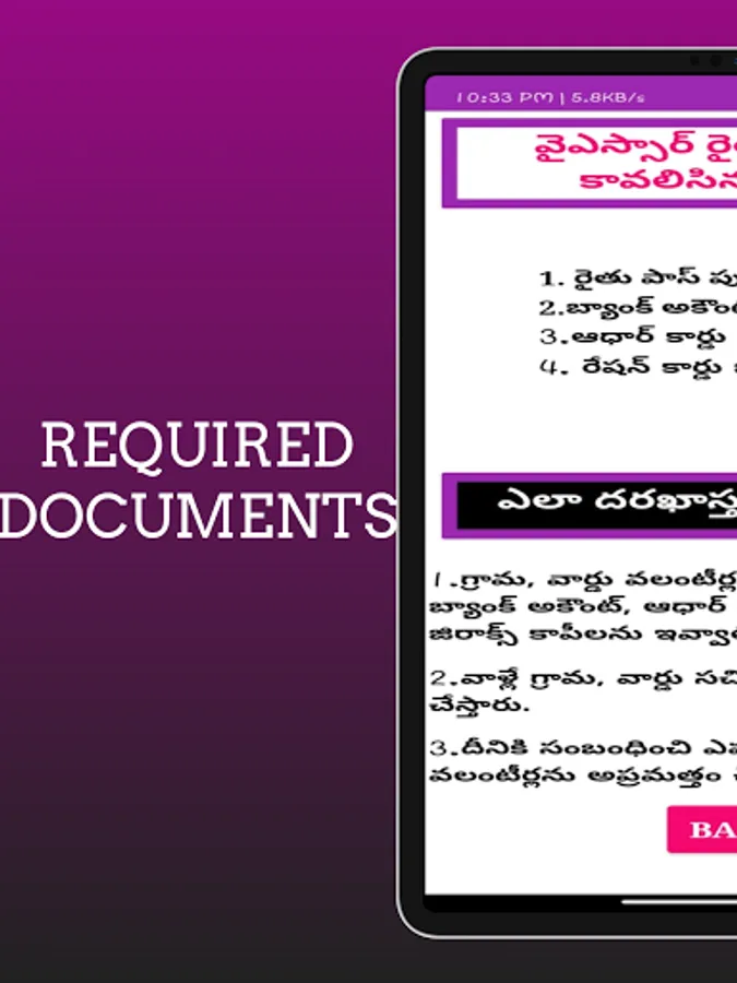IT CONSISTS ABOUT NAVARATNALU SCHEMES AND DOCUMENTS REQUIRED FOR YSR RYTHU BHAROSA AND ALSO THE WAY TO APPLY FOR THE RYTHU BHAROSA SCHEME.