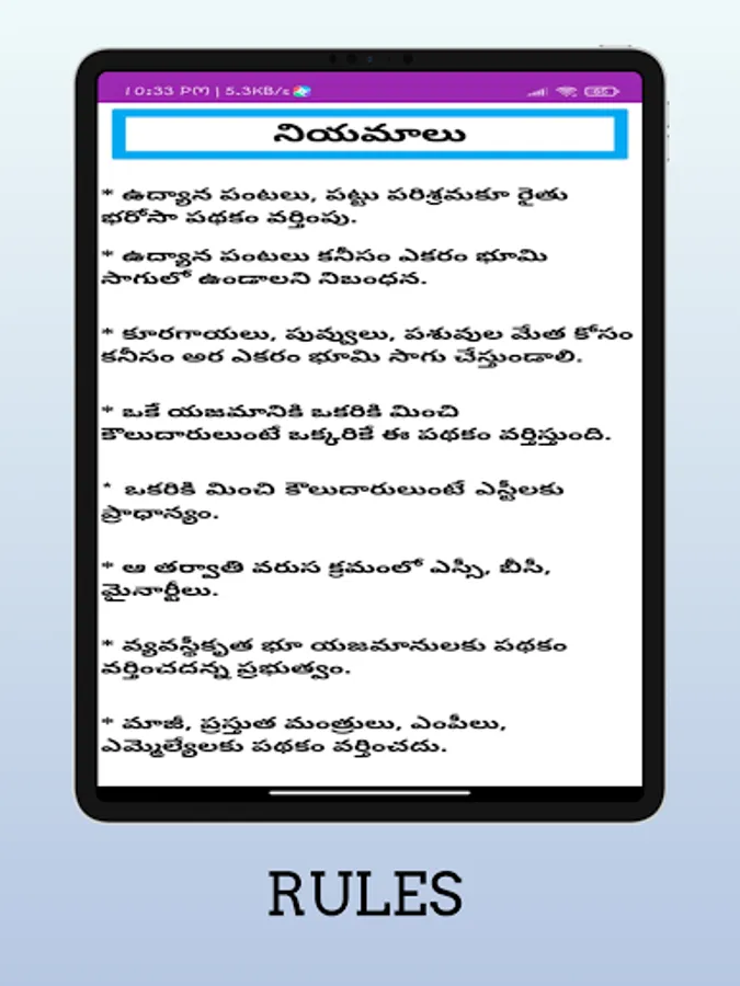 IT CONTAINS DETAILED INFORMATION ABOUT YSR RYTHU BHAROSA SCHEME.
