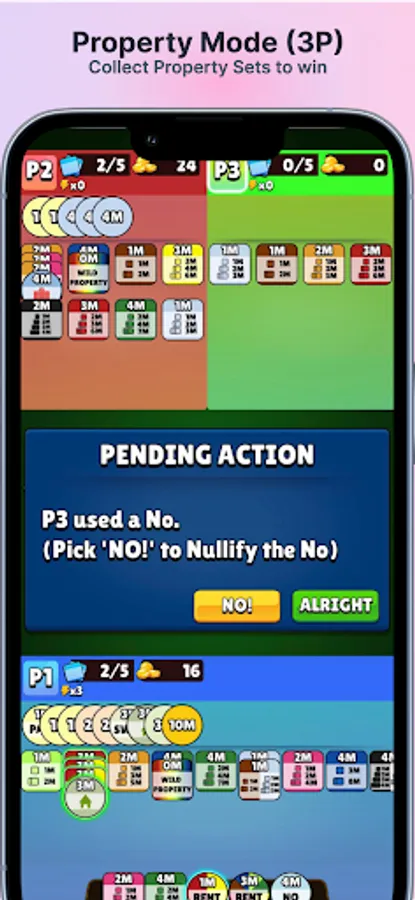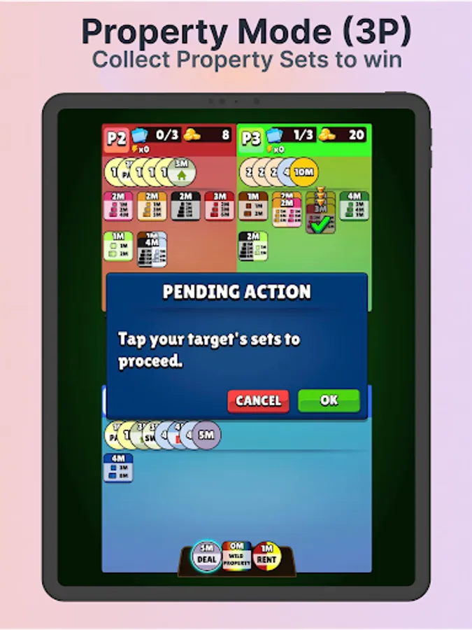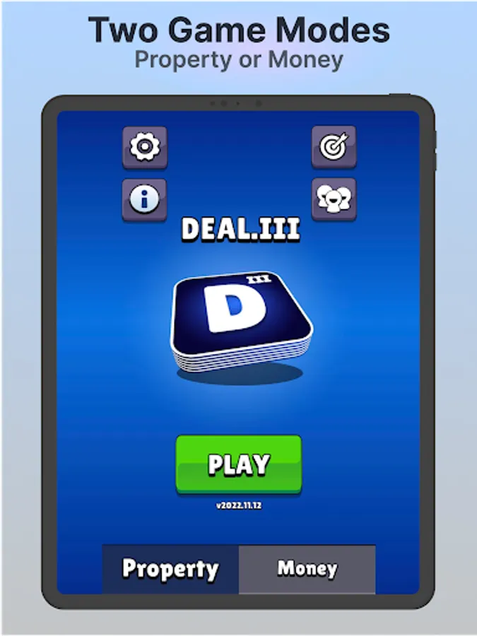 Deal.III is a fast, turn-based Strategy Deal Card Game that allows you to experience the followings - Collecting different sets of properties, performing Sly/Swap/Deal Actions, requesting birthday expenses / debts from your opponents.