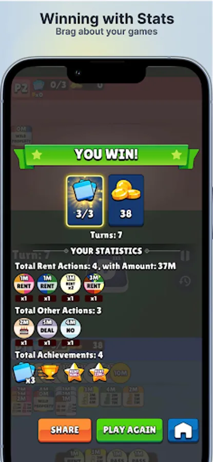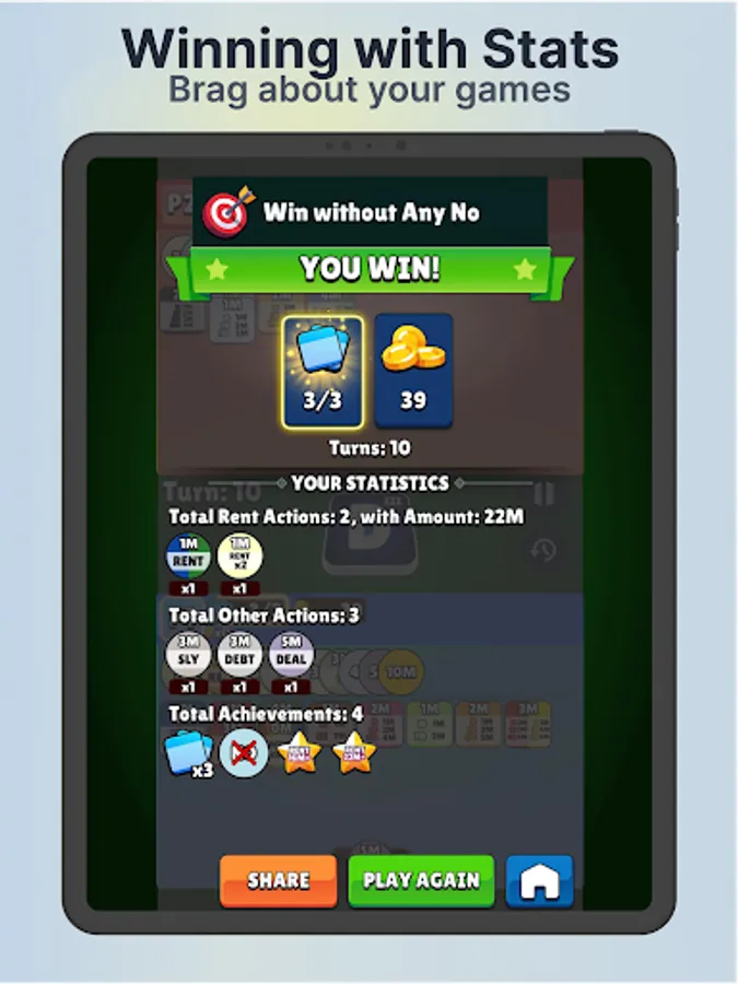 Challenge yourself to accomplish the 32 achievements. For example, win the game without using Action No, obtaining more property sets than the settings, etc