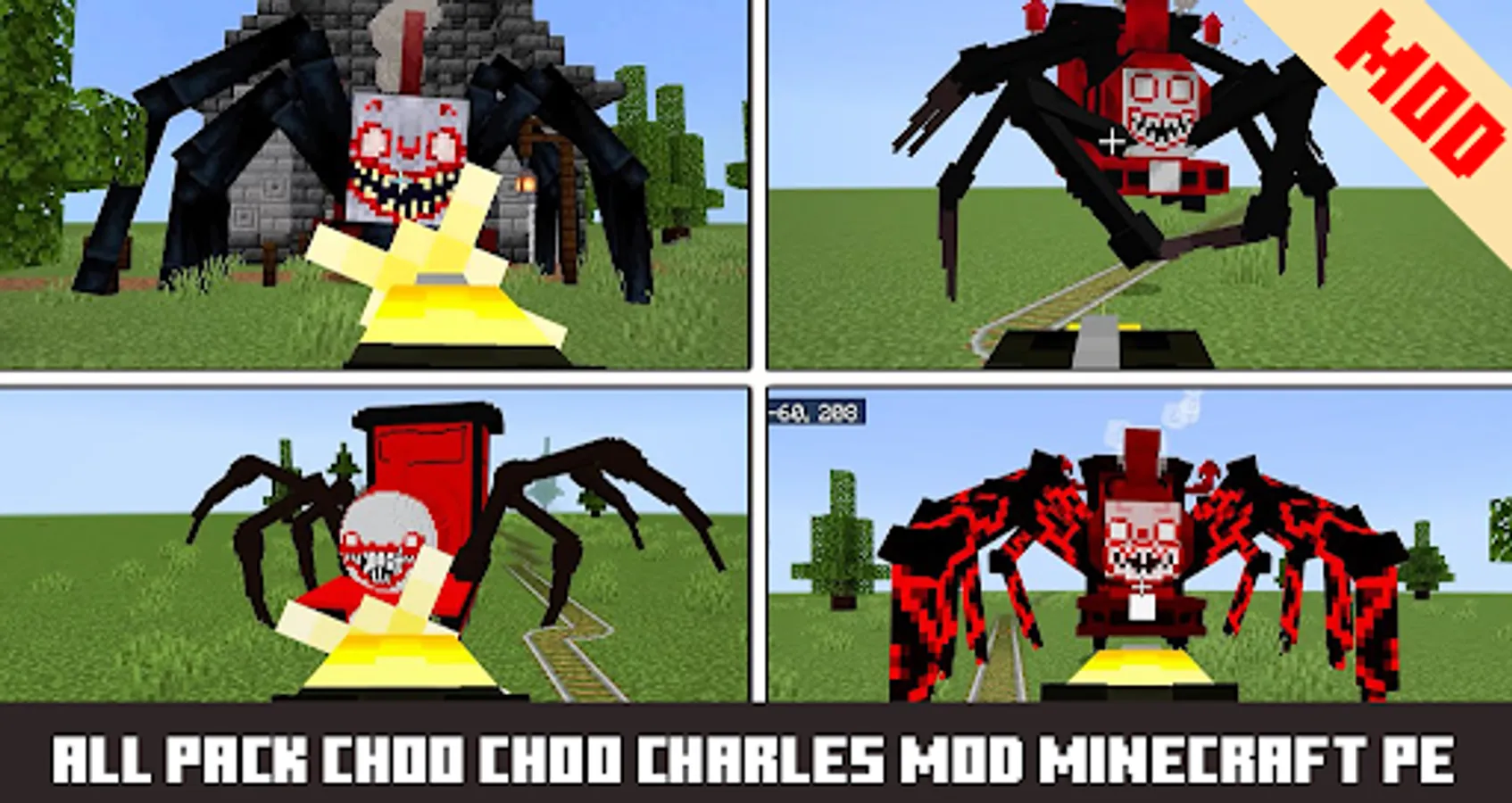 Choo Choo Charles an evil train/spider hybrid monster that roams the world looking for people to eat. Fight this creepy horror monster in your Minecraft PE world. He is very strong, fast, scary and quite hungry. If you're not ready to fight him, then run away. In order for the Choo Choo Charles Addon Mcpe to work, you need to enable creative mode and look into your inventory.
