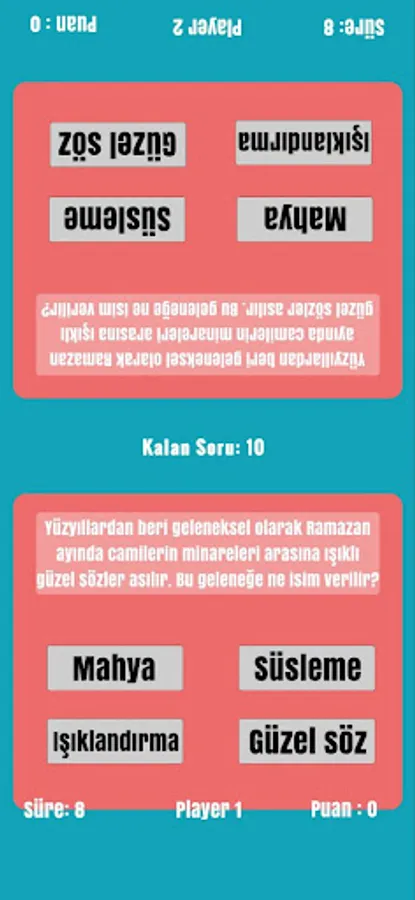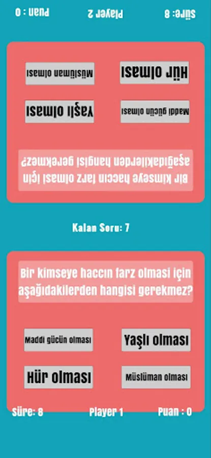 Two-person religious quiz with you. You can have a religious quiz with your friends from a single phone without internet. Don't worry, the questions are just for you. With this quiz, it will allow you to have a quiz with your friends over a phone without internet. Get ready to have a fun and good time with your friends. One phone is enough for you. Religious quiz for two is now live! It is very easy to use and interface. 10 questions will be asked in each quiz. At the end of 10 questions, it will be clear who won the quiz. Compete your religious knowledge and find the right answer. The religious quiz for two is completely ad-free, there is no commercial concern, it has been developed only for the sake of Allah. Do not miss your prayers and do not forget to leave a star comment so that the quiz reaches more people, thank you very much.