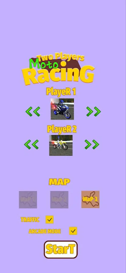 Are you ready to race offline with your friend with a single phone with Two player Motorcycle Racing? Get ready for a motorbike race with your friends. We have 3 fun maps in our Two player Motorcycle Racing game. There are two different modes in these maps as traffic and arcade mode. While you are racing a motorcycle, this ramp will jump from obstacles and you have to finish the race without hitting the cars in the traffic with your motorbike. Two player Motorcycle Racing game, which can be played as two players with a single phone, also allows you to race motorcycles without internet. There are 3 different types of motorbikes in the Two player Motorcycle Racing game. Both players can choose and play the bikes. The first motorcycle is a racing motorcycle, the second motorcycle is a police motorcycle, and the third motorcycle is a motocross motorcycle. motorcycles have a turbo side nos feature, this feature both increases the speed of the motorcycle and lifts the front wheel of the motorcycle while racing.