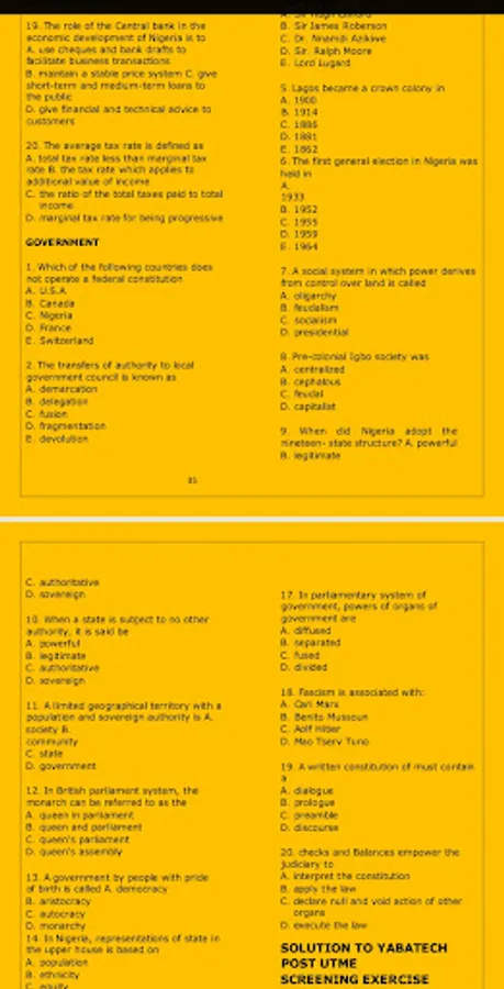 The app contains all Yabatech Post utme past questions with answers designed specifically for candidates who wish to get admission into Yabatech. The school repeats past questions alot, so therefore, using the past questions provide added advantage.