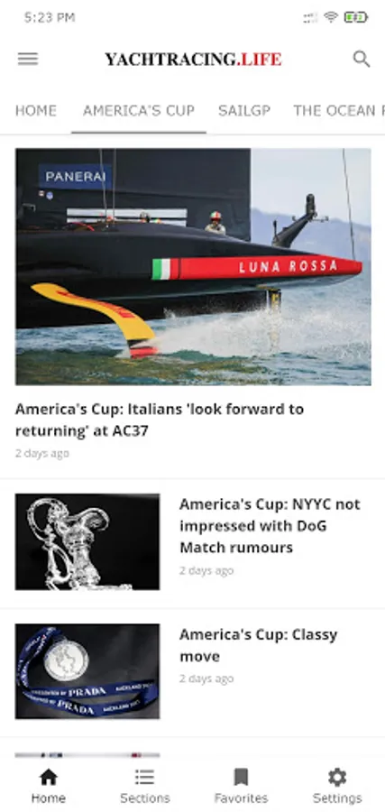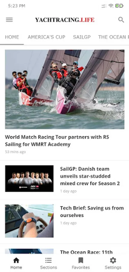 A news app for professional high-performance yacht racing: America's Cup, SailGP, Vendee Globe, The Ocean Race, Olympic sailing, World Match Racing Tour, Jules Verne Trophy, and more.