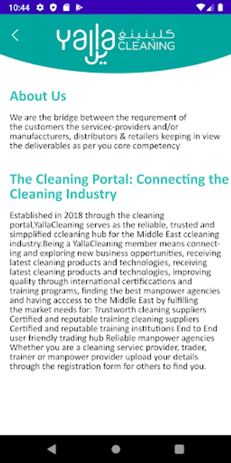Established in 2018 through the cleaning portal, YallaCleaning serves as the reliable, trusted and simplified cleaning hub for the Middle East cleaning industry. Being a YallaCleaning member means connecting and exploring new business opportunities, receiving latest cleaning products and technologies, improving quality through international certifications and training programs, finding the best manpower agencies and having access to the vast cleaning knowledge center.