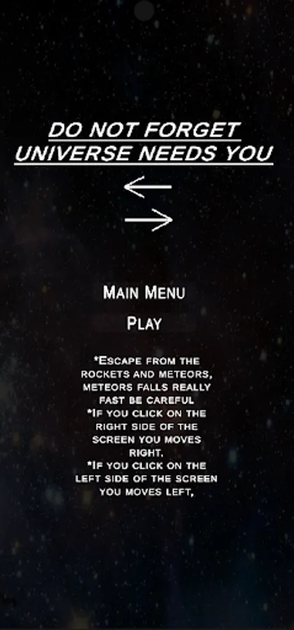 Rockets of aliens and falling meteors. We hope you can escape from all of them and save the universe... It is just two fingers away to survive