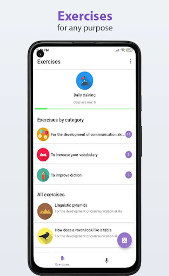 In the modern world, almost everything depends on the ability to communicate with others. Those who know how to do this, have many friends, easily find partners, and quickly move up the career ladder. The ability to communicate well is not given to everyone from birth, but it can be acquired. The exercises that you will find in the app are aimed at achieving such goals as: