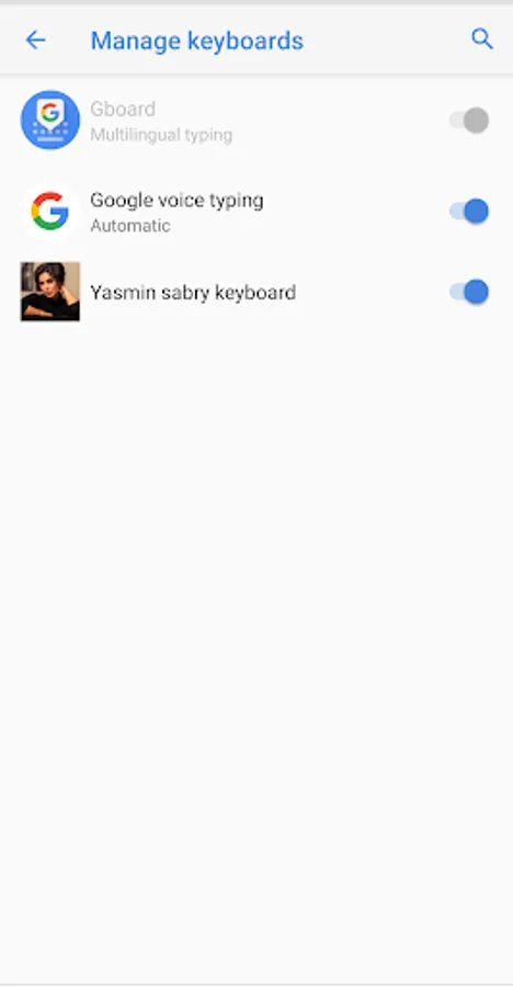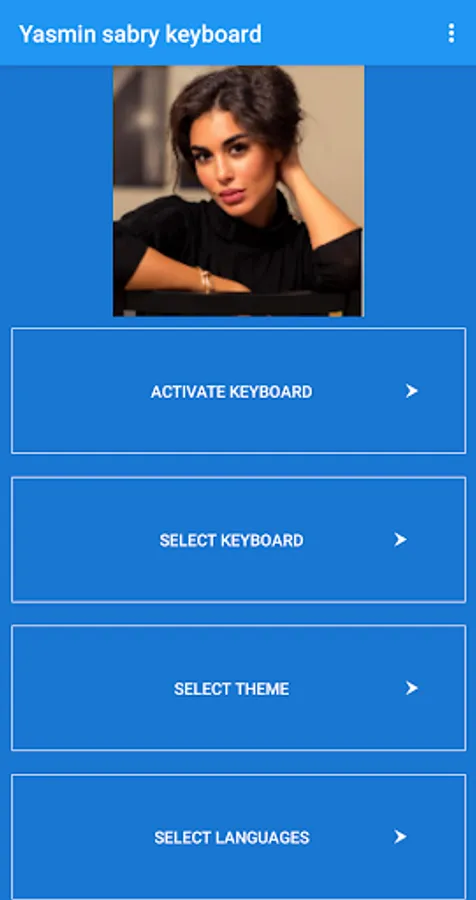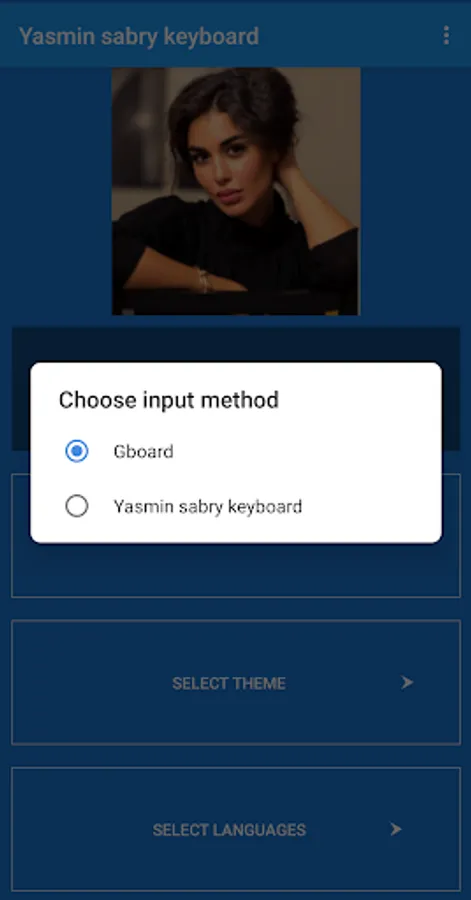 Arabic and English keyboard backgrounds in the form of pictures of Egyptian artist Yasmine Sabry.