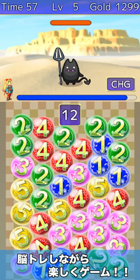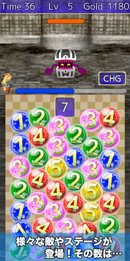 Select the balls so that they become the numbers displayed on the screen, and try to damage and defeat the enemies!