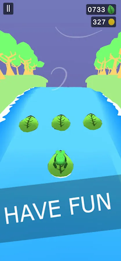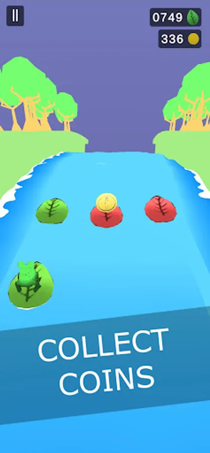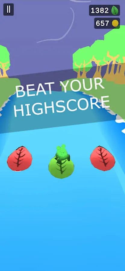 Using your frog character, jump between leaves. Progress further to break your personal best and collect coins.