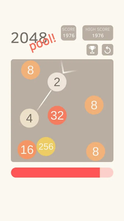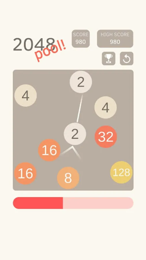Collide two numbers of the same value so they merge into one. Your goal is to reach as high of a score as possible. Each hit takes some of your energy, however, colliding the balls replenishes the energy. Performing combos (merging more than two balls in a single hit) replenishes even more power for continued gameplay!