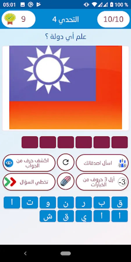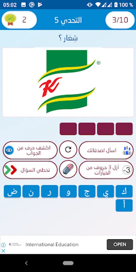 The game provides you with several aids to solve difficult questions by showing the first letter, asking for help from a friend, or skipping the question.