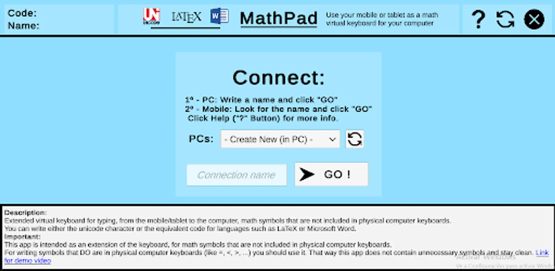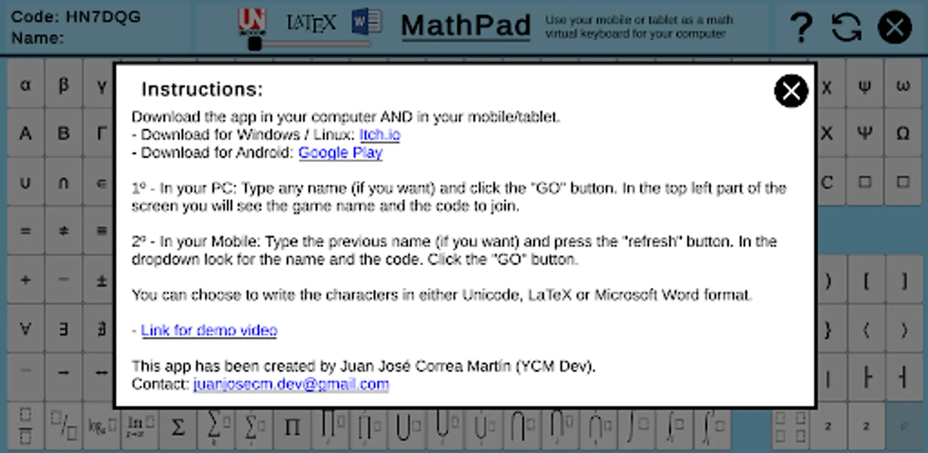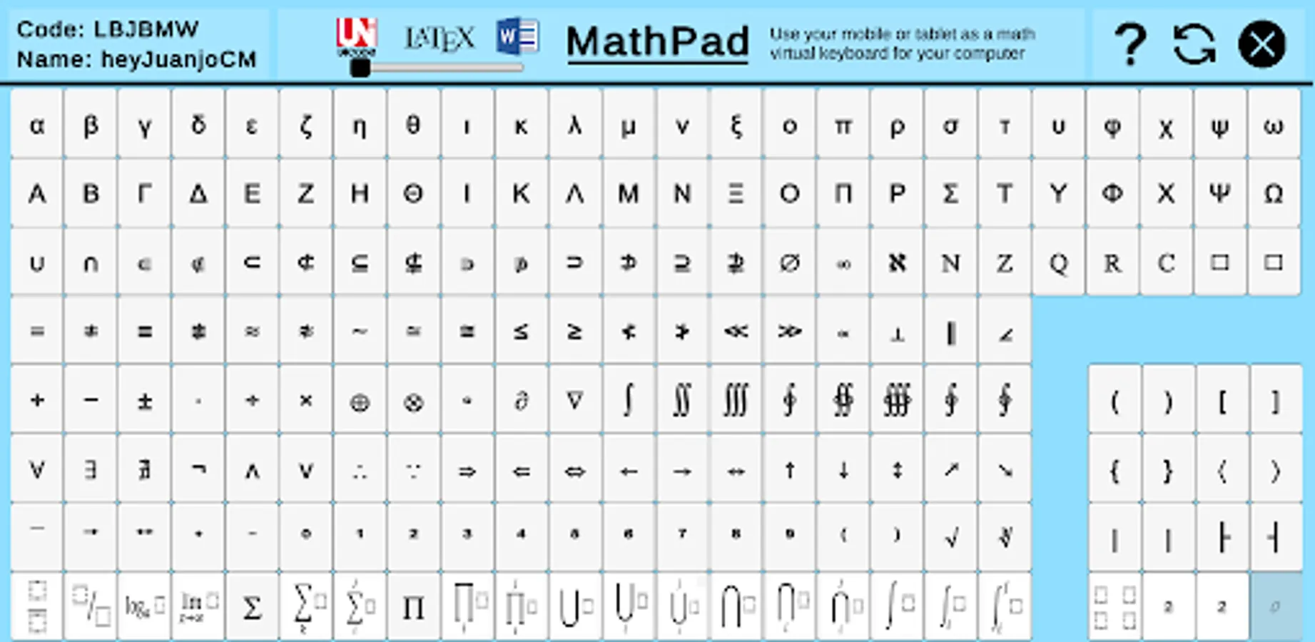 Use your mobile or tablet as an extension of your computer keyboard to write math symbols which are not in it.