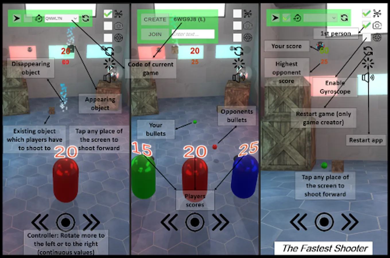 This is a multiplayer game to connect with friends or with people from anywhere in the world and play quick games about being the fastest to shoot a series of objects that appear. You can create game rooms or join existent ones.