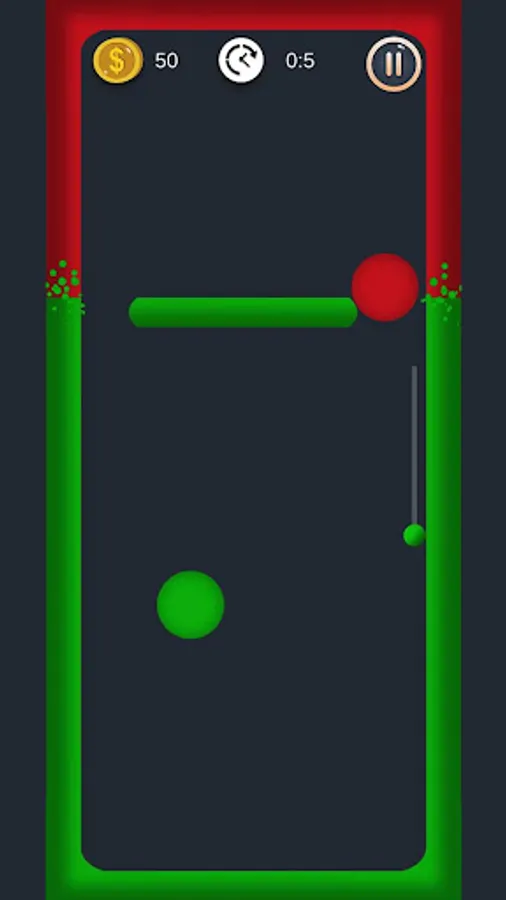 Swipe the bar and let the green ball pass into the bottom green box at the bottom don't let the red ball pass.