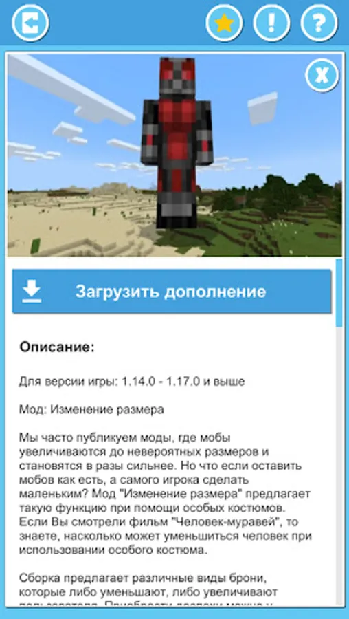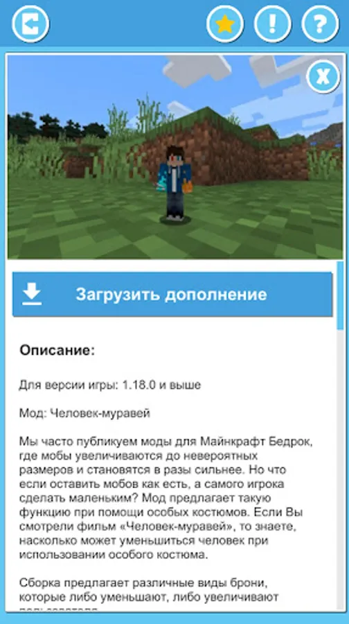 This is an unofficial app with addons and mods. This application is in no way connected with the developers of the original game, for which they are intended.