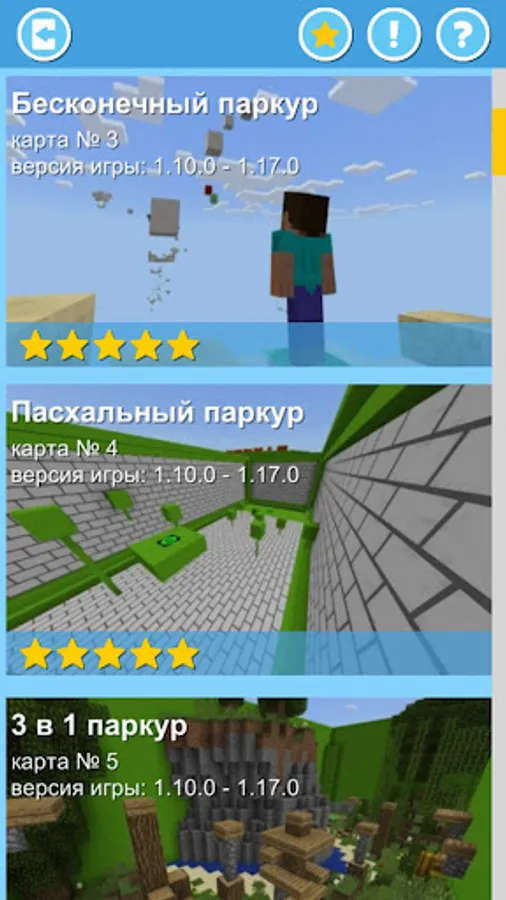 Parkour maps contain many levels to learn how to jump or just have fun in the game. You just need to download parkour maps and jump through the levels. You are waiting for different addons parkour, mod parkour and map parkour.