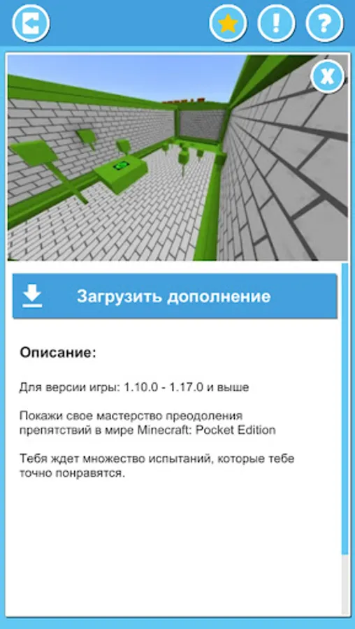 Map parkour on the phone is an unofficial application for mods and add-ons. This application is in no way affiliated with the developers of the original game for which they are intended. For all questions and write to us at. mail and we will answer you.