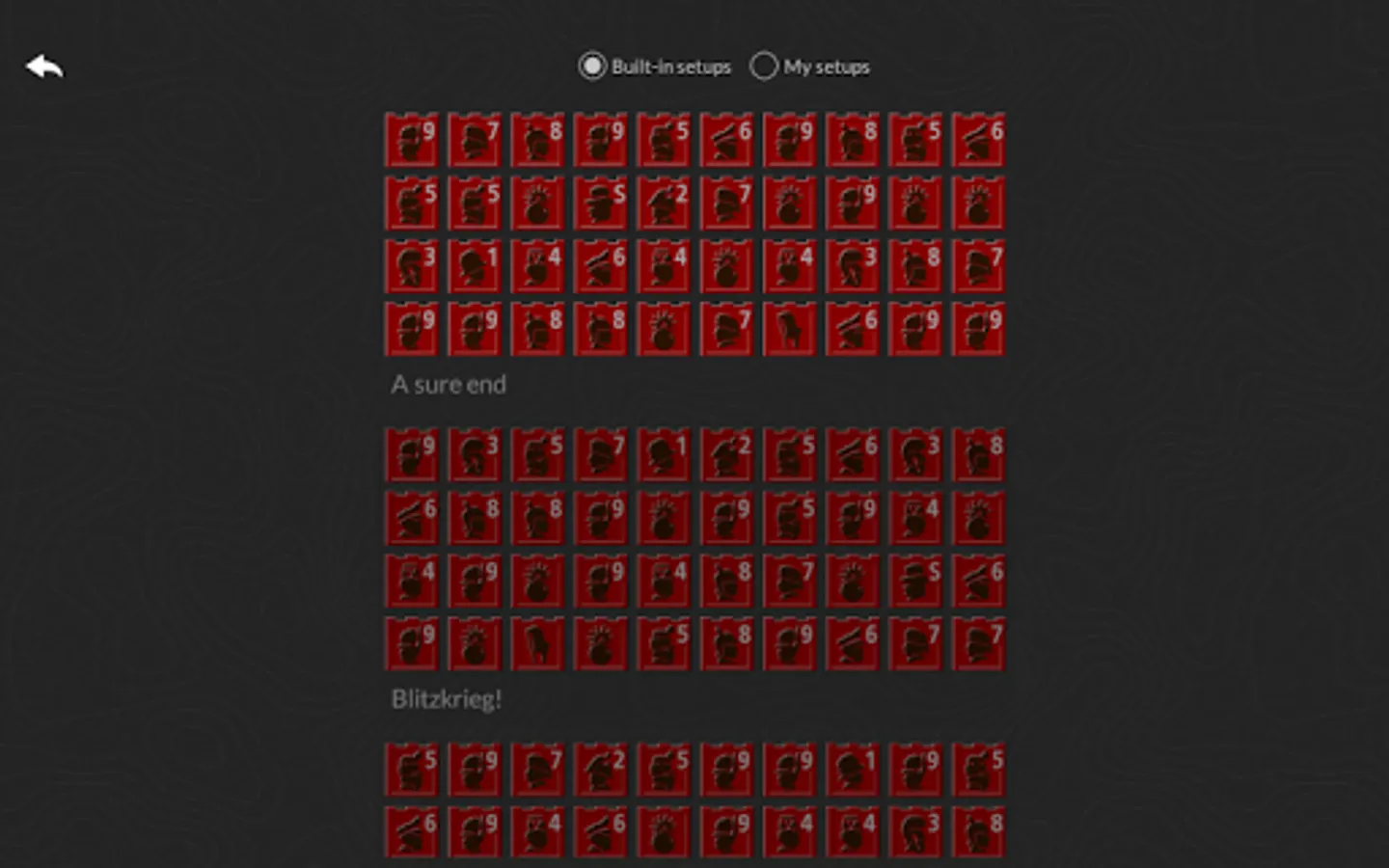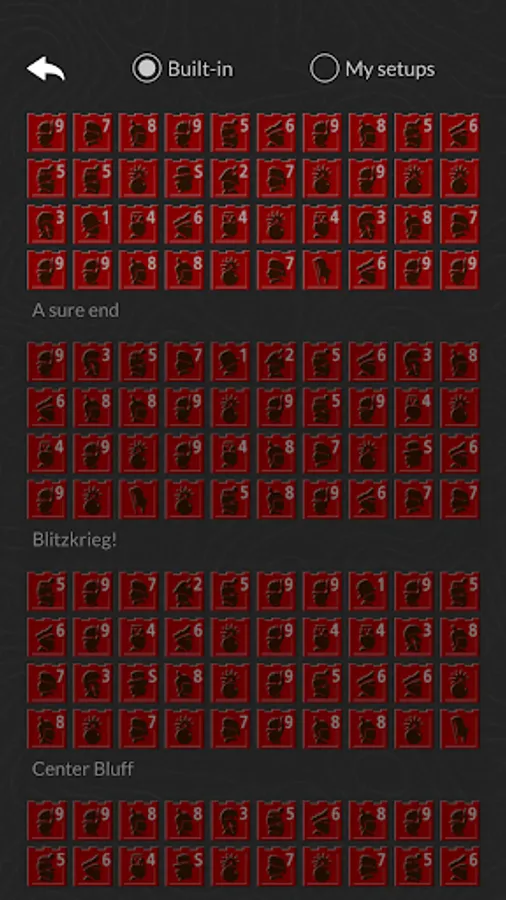 One of the great features of Heroic Battle is that you can create and save your own setups. Each setup produces a different kind of game. Do you prefer fast, wide open play or a slower more conservative pace? Do you want to fortify your flag and defend it or just hide it somewhere and dare your opponent to find it? It’s up to you.