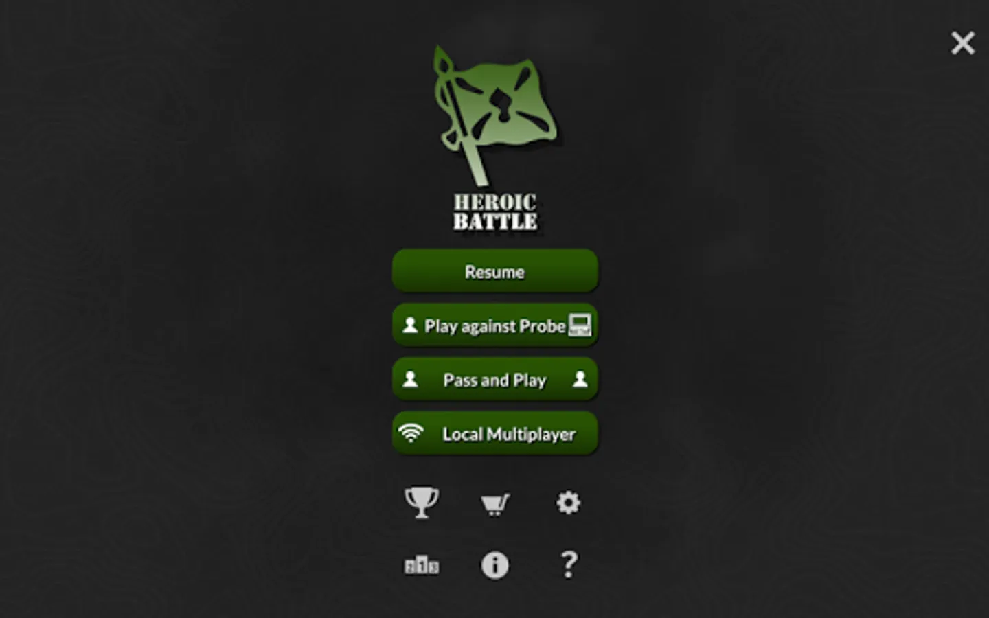 Heroic Battle is a challenging strategy board game that requires logic, deception and memory. Play against a friend on your local Wi-Fi network or a computer opponent: Probe, the Computer Stratego World Champion. You can start a new game in seconds and pause a game to complete at a later time.