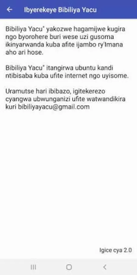 Bibiliya Yacu is released specifically to help Rwandans and other people who can read Kinyarwanda. It is free, ads-free, and works offline.