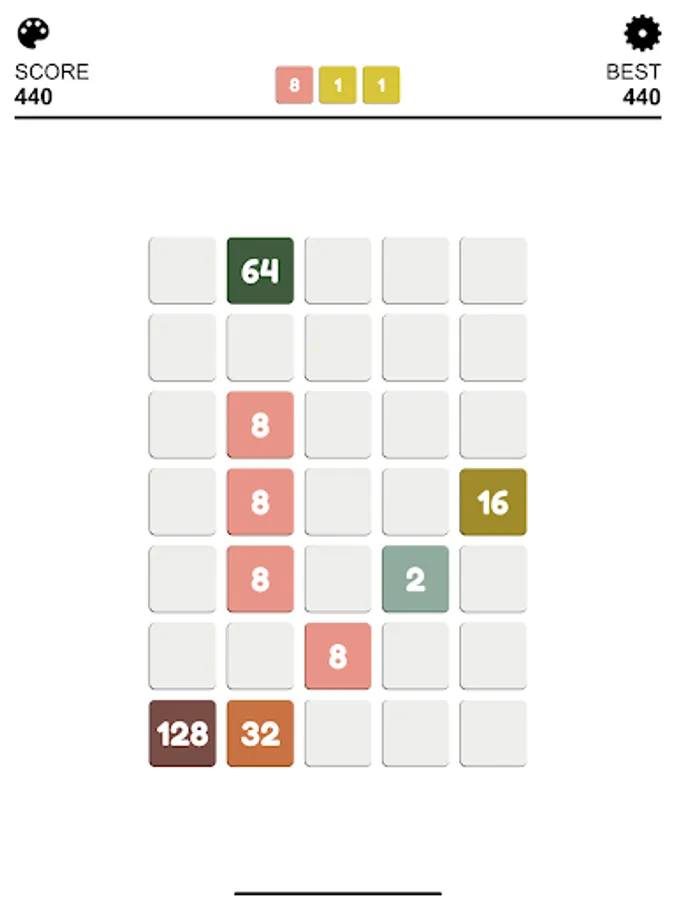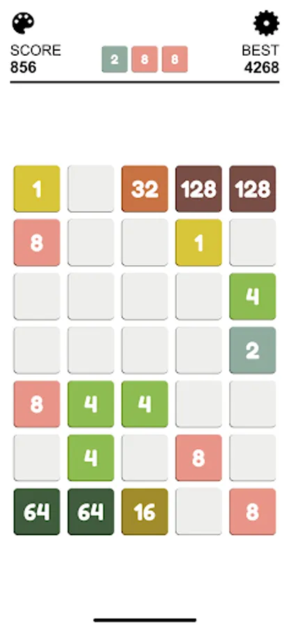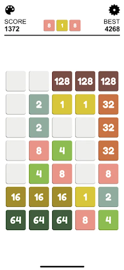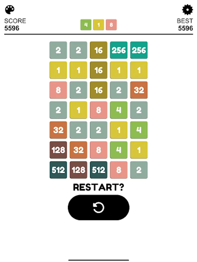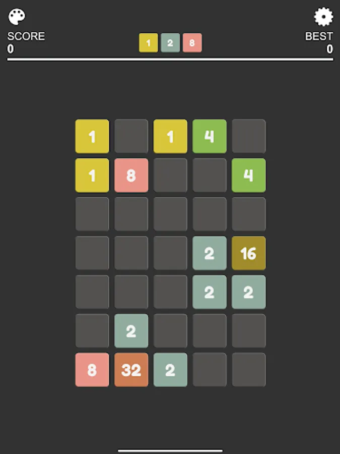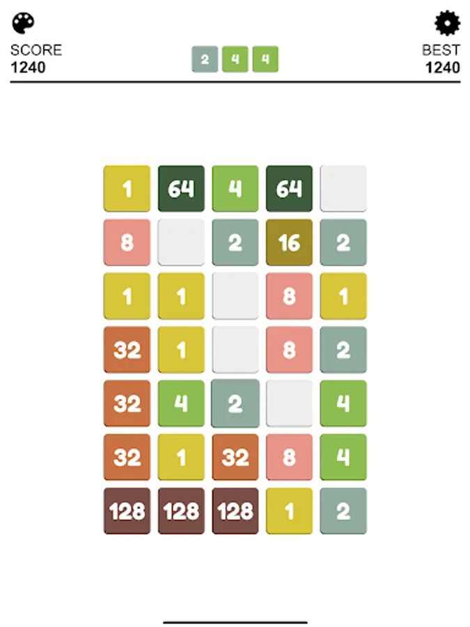 In a checkerboard of limited cells, your mission is to connect at least 4 cells with the same number to create a bigger number. After each round, more random numbers would appear, increasing the difficulty of game.