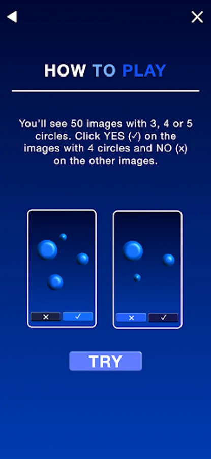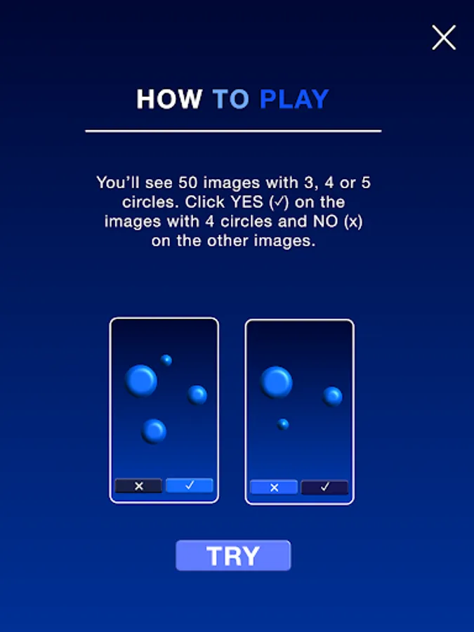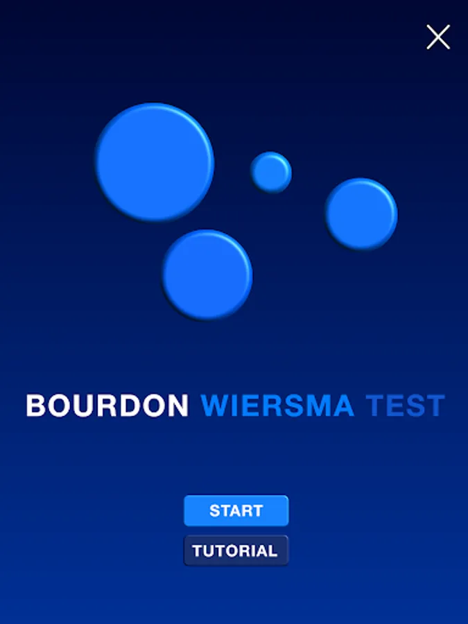 The test has been used in the evaluation of stroke where subjects were instructed to check all groups of four dots. The number of groups of dots other than four needs to be pushed away by hitting the x button, and the time spent (maximum, 15 minutes) is taken into account.