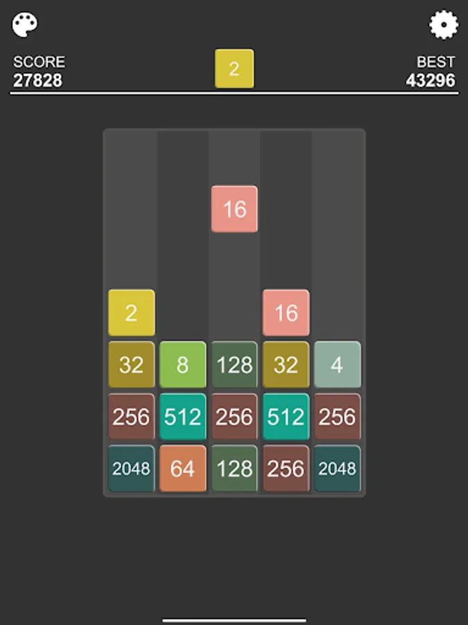 Drop the bricks down and merge similar numbers to get higher tiles.