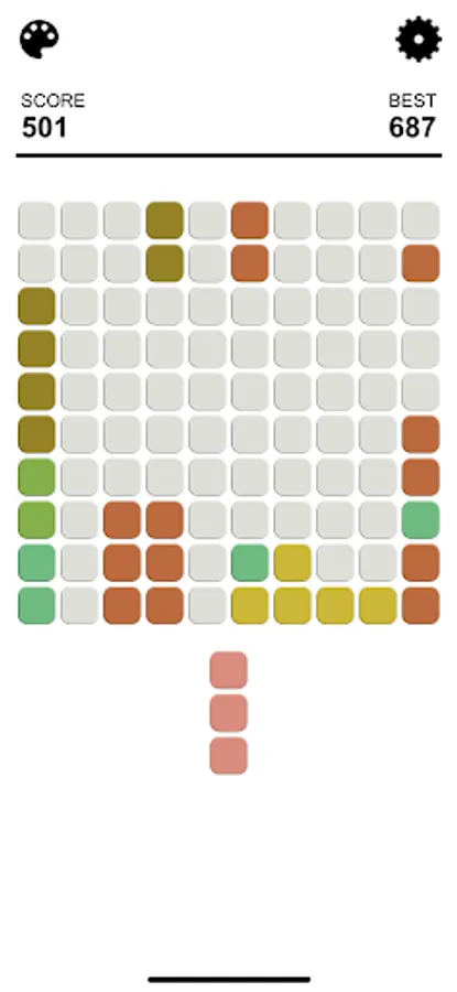 Simply try to fit pieces into the grid. Your mission is to complete vertical or horizontal lines to clear blocks. Complete a line either vertically or horizontally and they disappear.