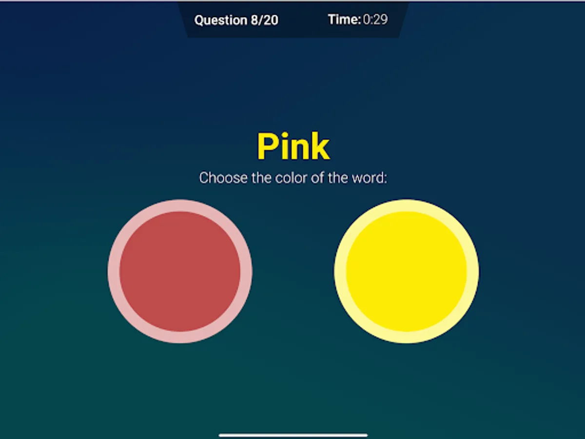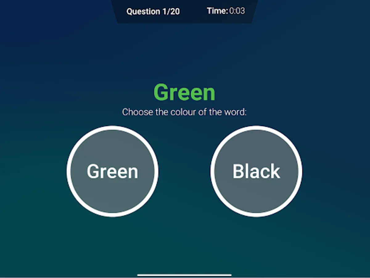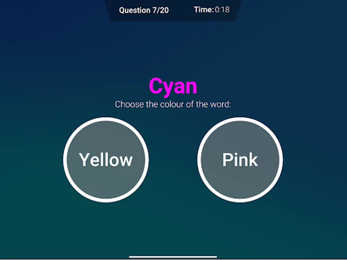 When you read a word about a color your brain immediately things of the meaning. In this test it asks to select the color of the word. The time of your reaction will be measured and shown in the graph.