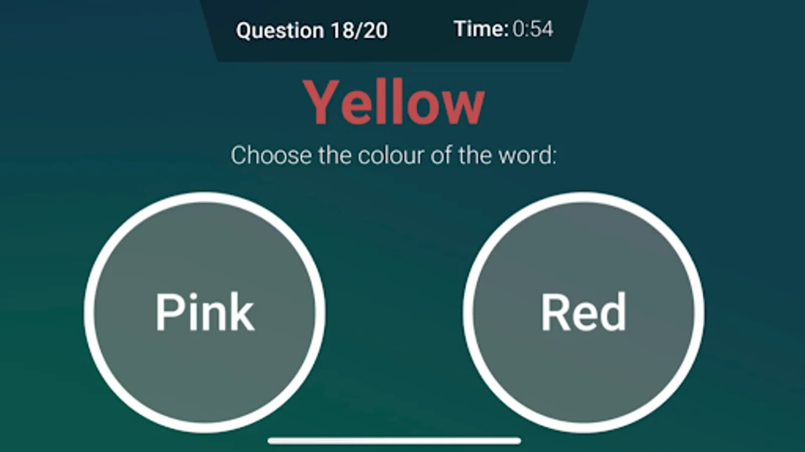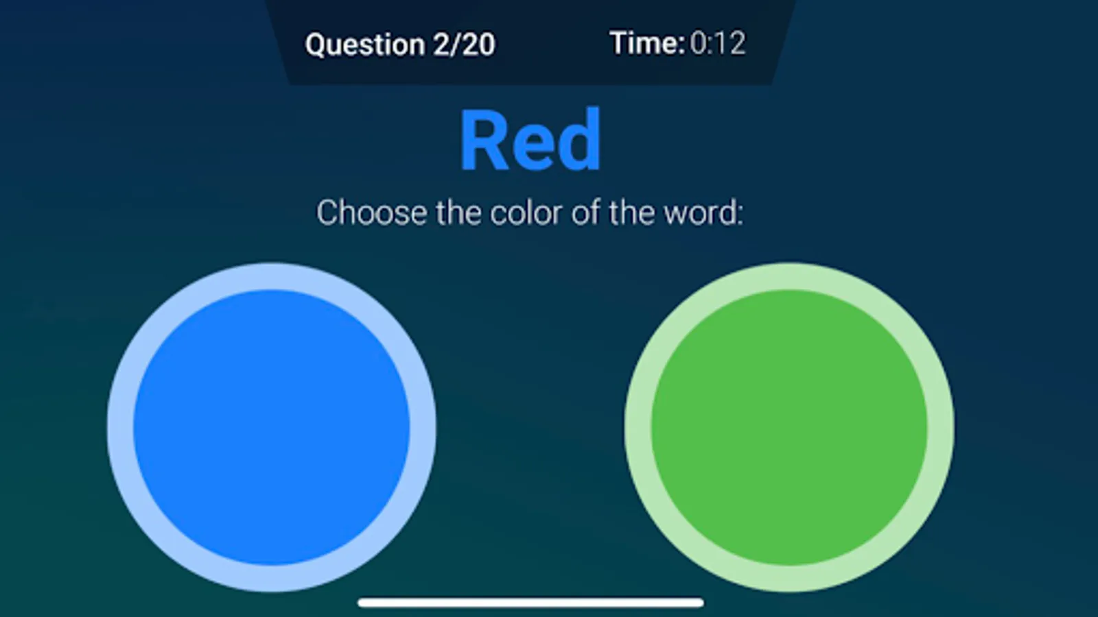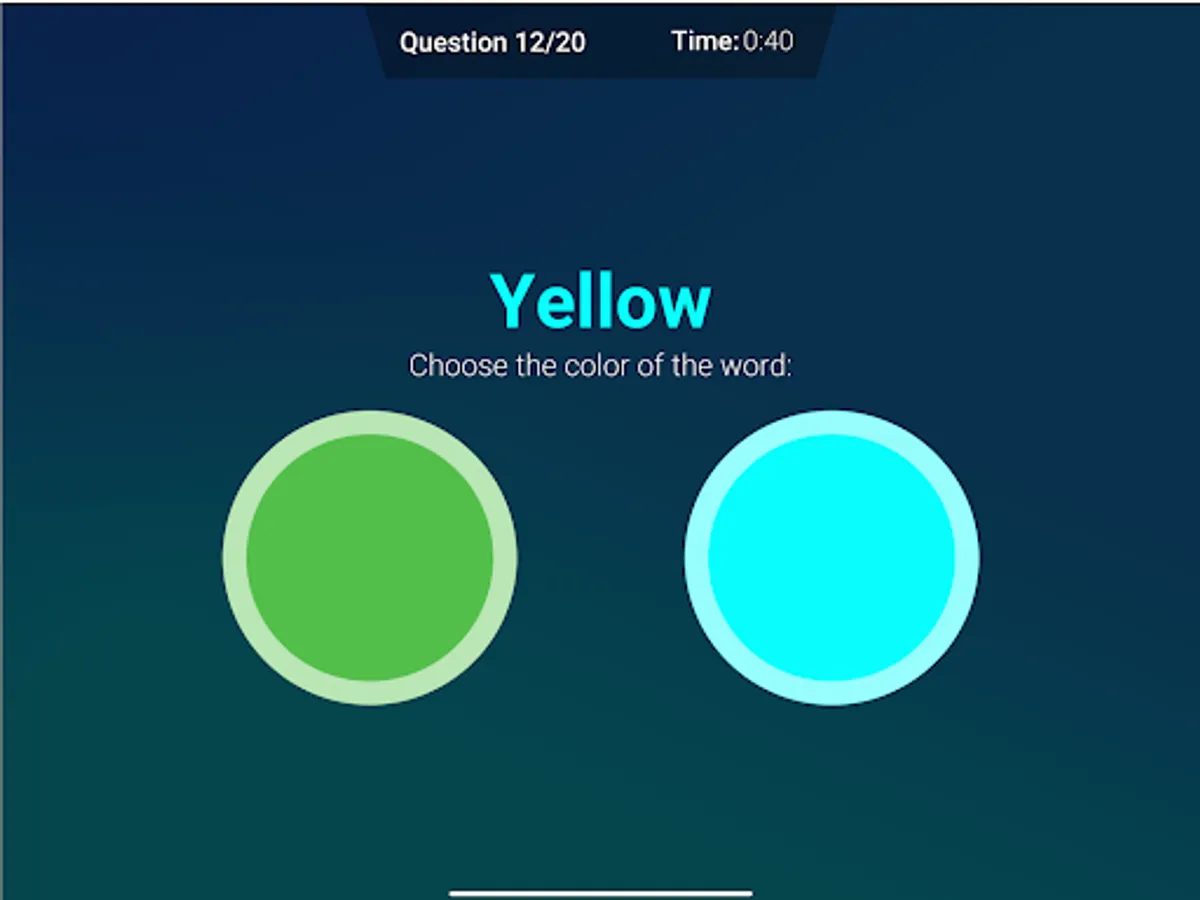 When you read a word about a color your brain immediately things of the meaning. In this test it asks to select the color of the word. The time of your reaction will be measured and shown in the graph.