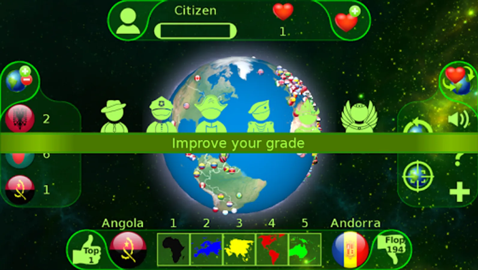 * Improve your grade (among 6) from simple "Citizen" that can send one heart