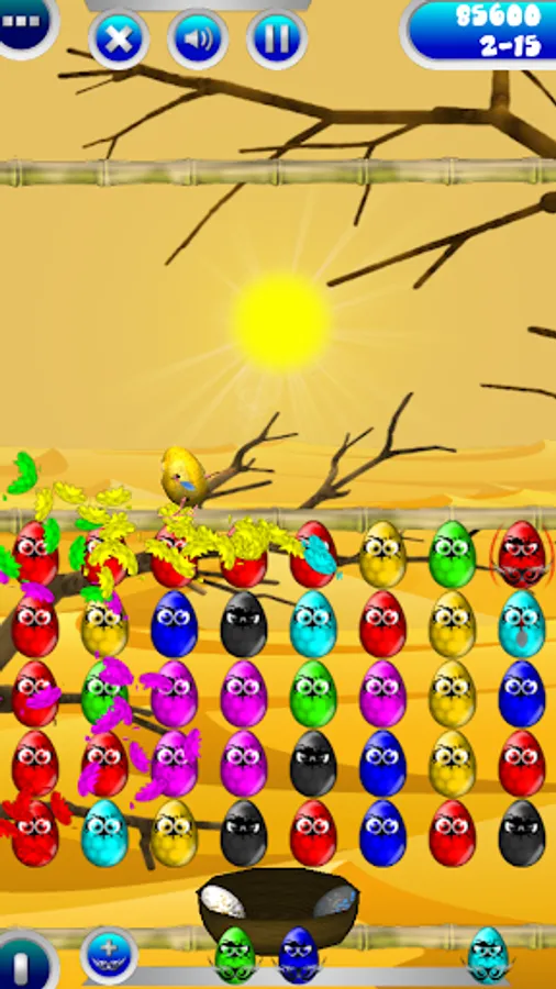 * Align the eggs same color removes the line and causes the descent of the bird.