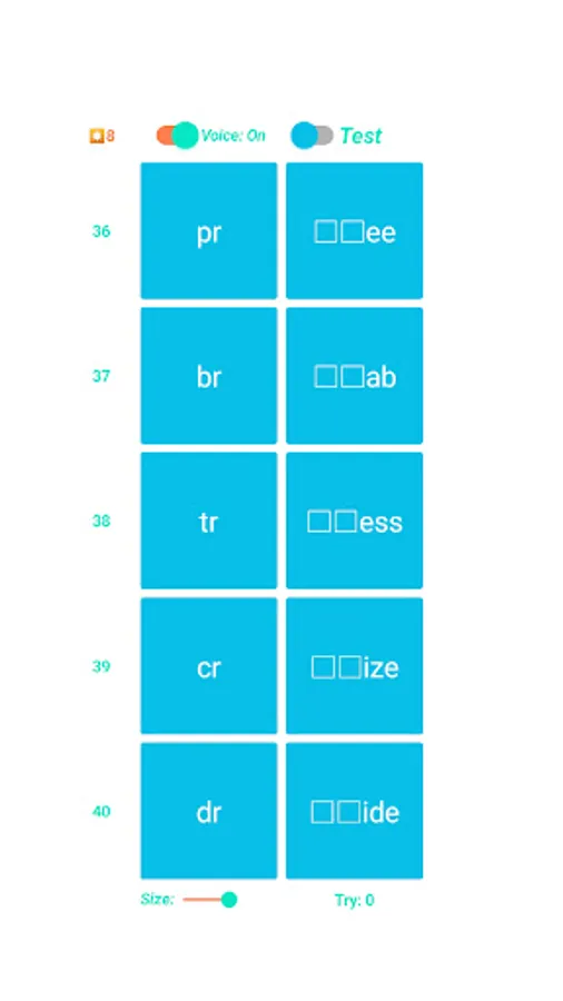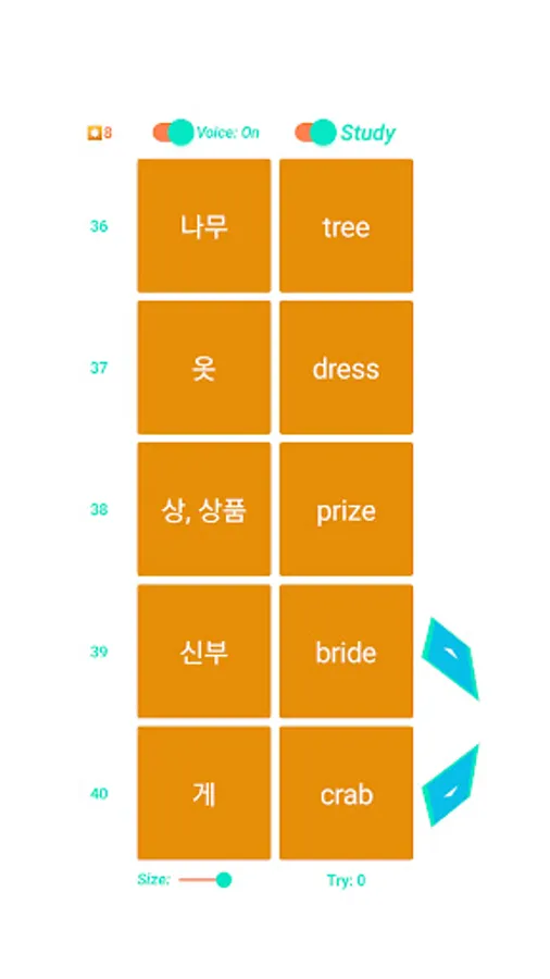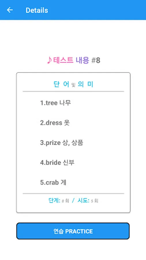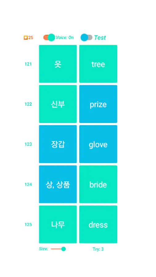 ▶ Move the Study / Test toggle switch, learn the pronunciation and meaning of a total of 1830 words according to your level, and start the test.