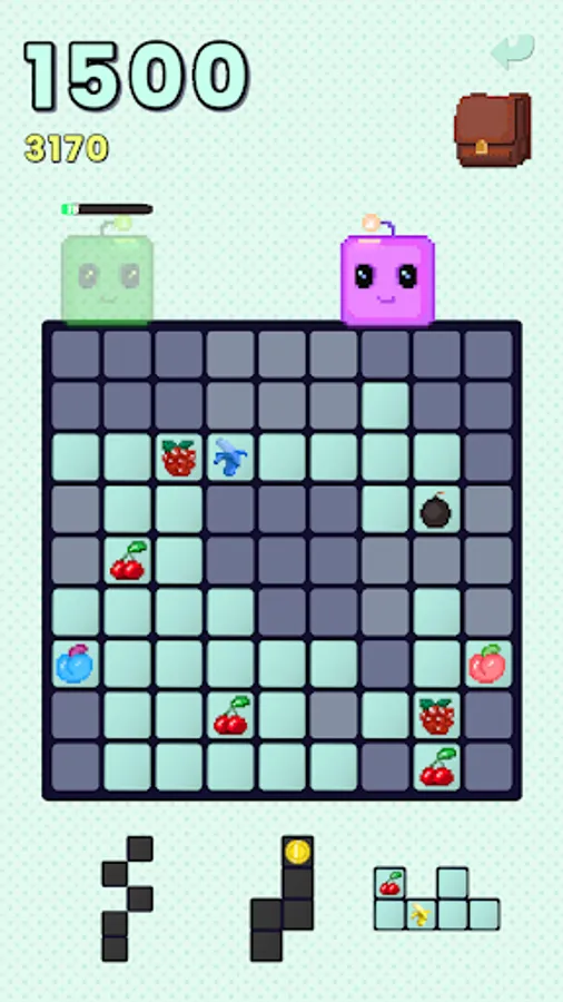 Complete rows and columns of blocks to earn points and food for your Blokis. Your Blokis will be useful in a pinch when none of your pieces will fit. Plus they look cute bouncing around!