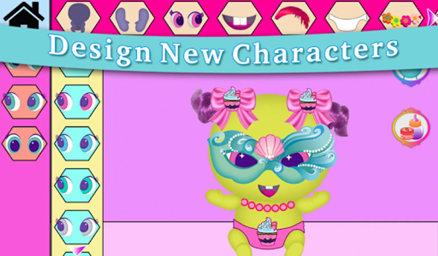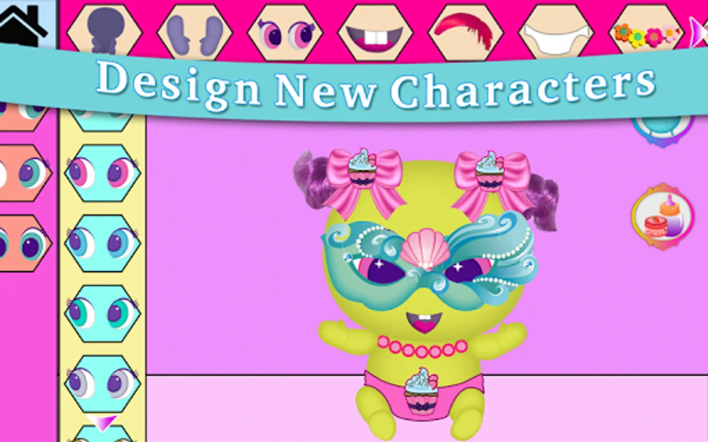 Design your own doll combining many accessories, give it a name and have fun with the different activities available: