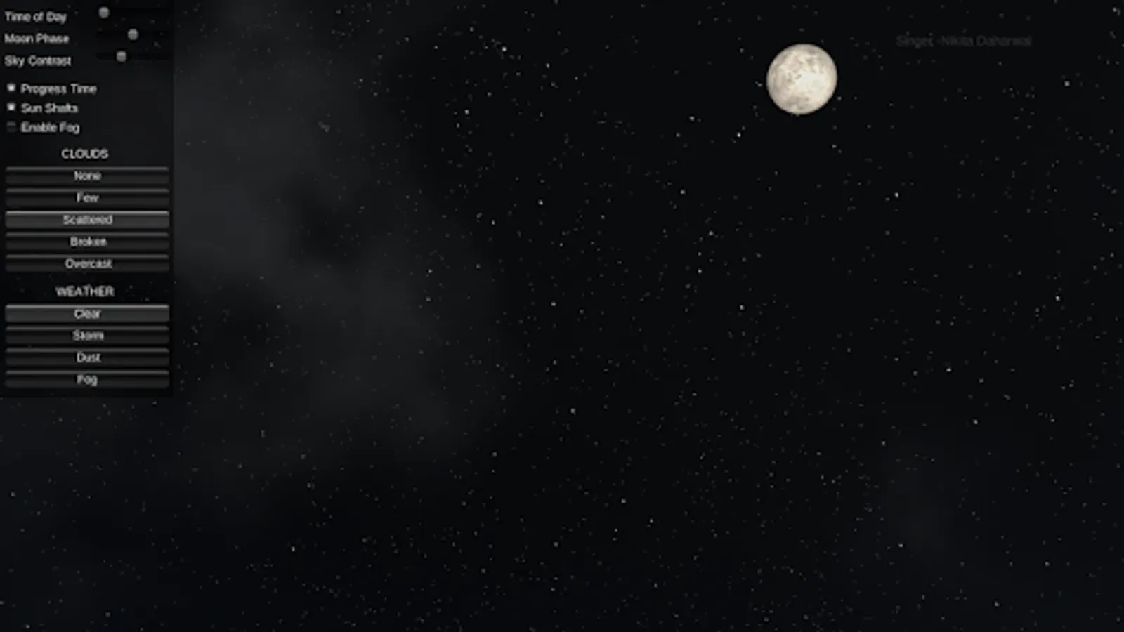 ४,आप कभी भी स्लाइड बटन से दिन रात का समय ,चन्द्रमा की कला ,सूर्य प्रकाश कम ज्यादा या बदल सकतें है .