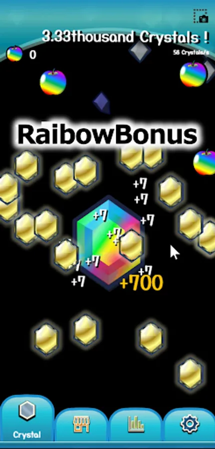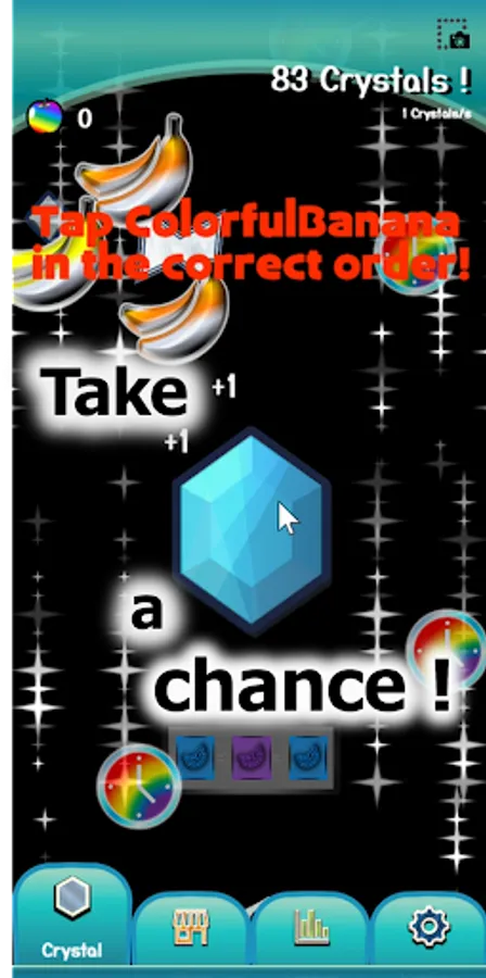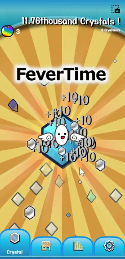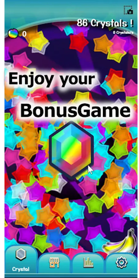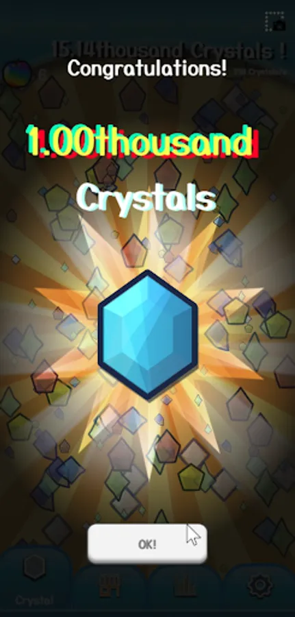 Tap and click crystals in the center of the screen to add more and more crystals.
