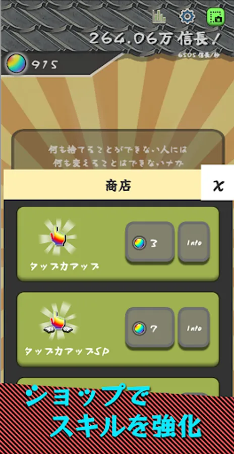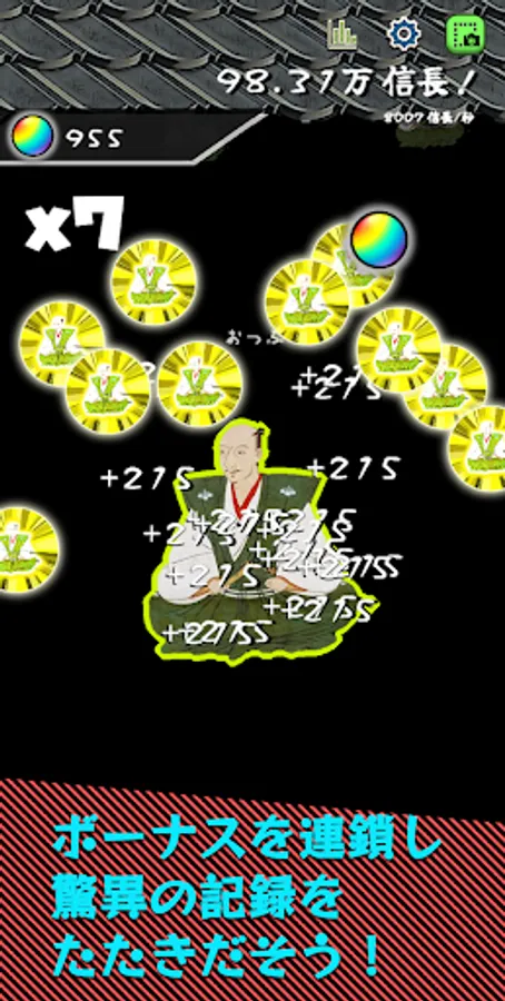 - The operation is simple, just hit and tap Nobunaga in the center of the screen to increase Nobunaga more and more.