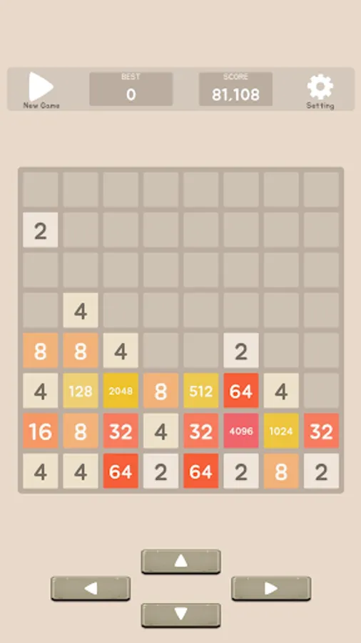 Move the tiles up, down, left, and right. When two tiles with the same number touch, they merge into one and double the number.