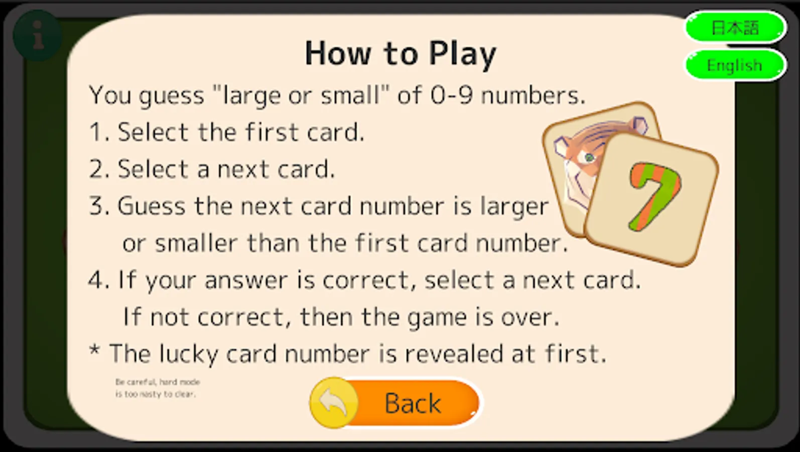 You guess "large or small" of 0-9 numbers hidden in back of cards.