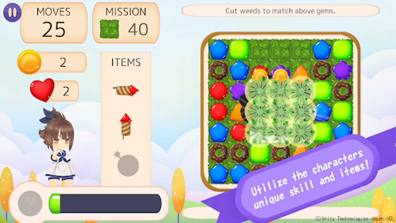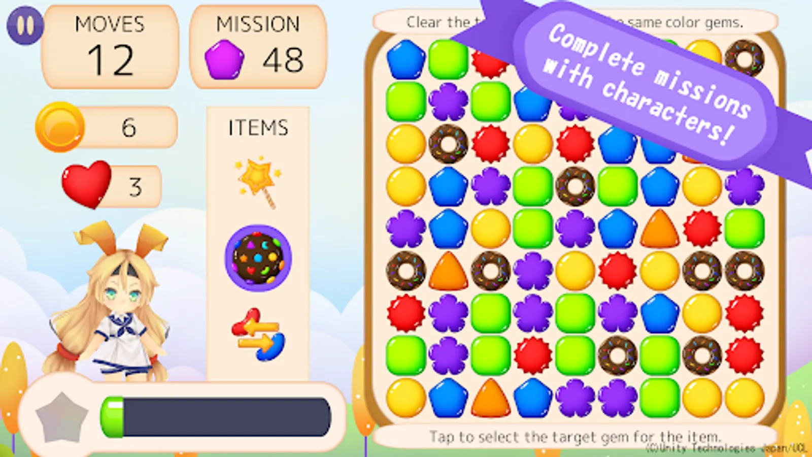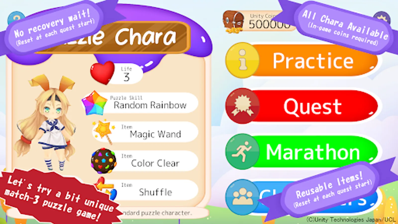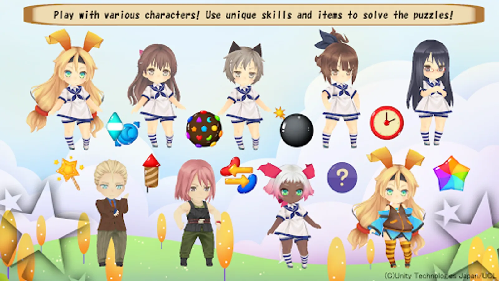 You can choose a character from "Unity-chan!" universe who plays the puzzle together.